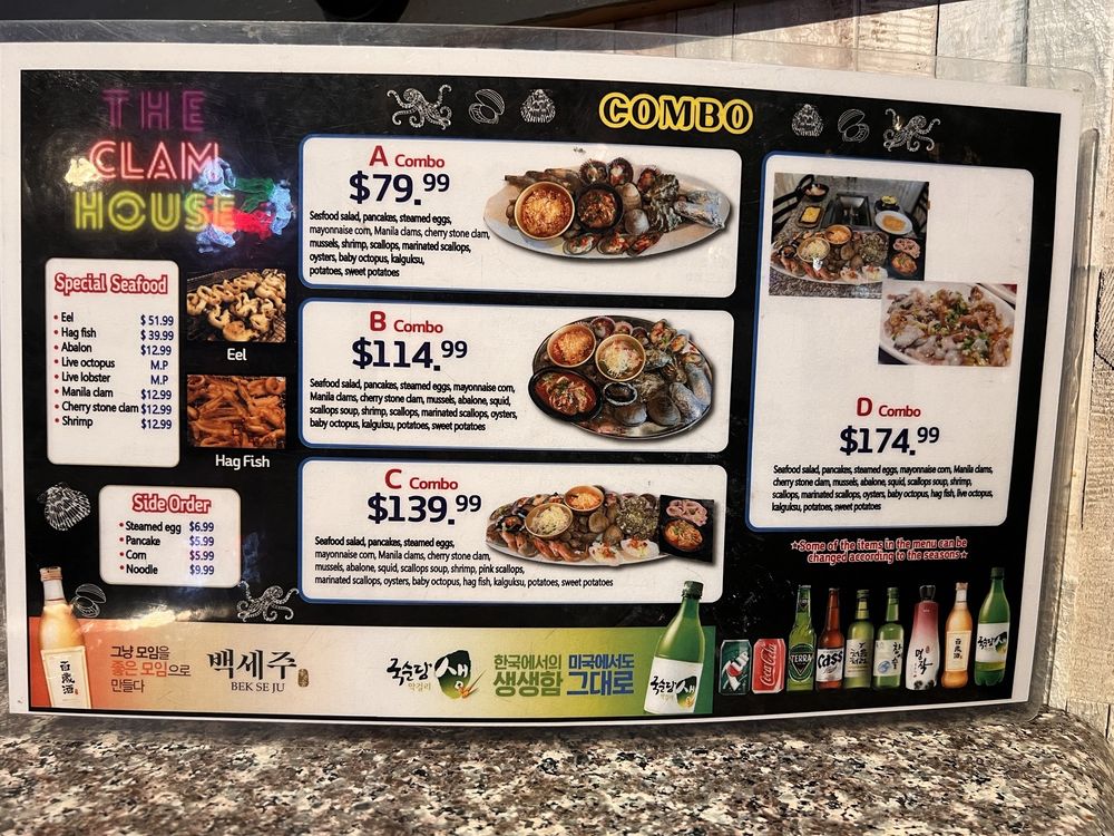 The Clam House in Monterey Park offers a unique blend of barbecue, Korean, and seafood cuisine. The restaurant provides a variety of amenities including reservations, wheelchair accessibility, and accepts Apple Pay and credit cards. Known for its attentive service, the owner even cooks the food for customers. Reviews highlight the fresh and delicious seafood options, with dishes like Manila clams, scallops, and steamed eggs cooked to perfection over a charcoal fire. Customers appreciate the generous portions and wide variety of dishes, making it a great spot for seafood lovers. Despite being inconspicuous from the outside, The Clam House delivers an unforgettable dining experience with its quality food, attentive service, and inviting ambiance.